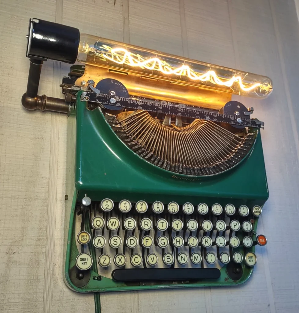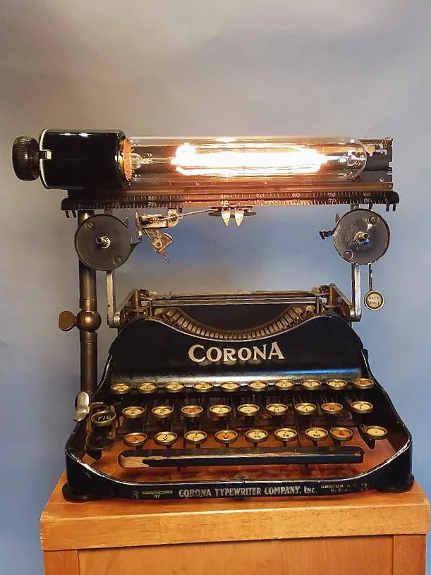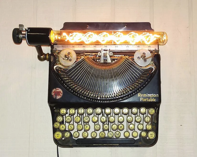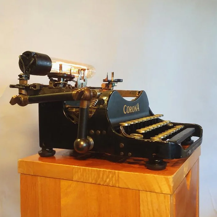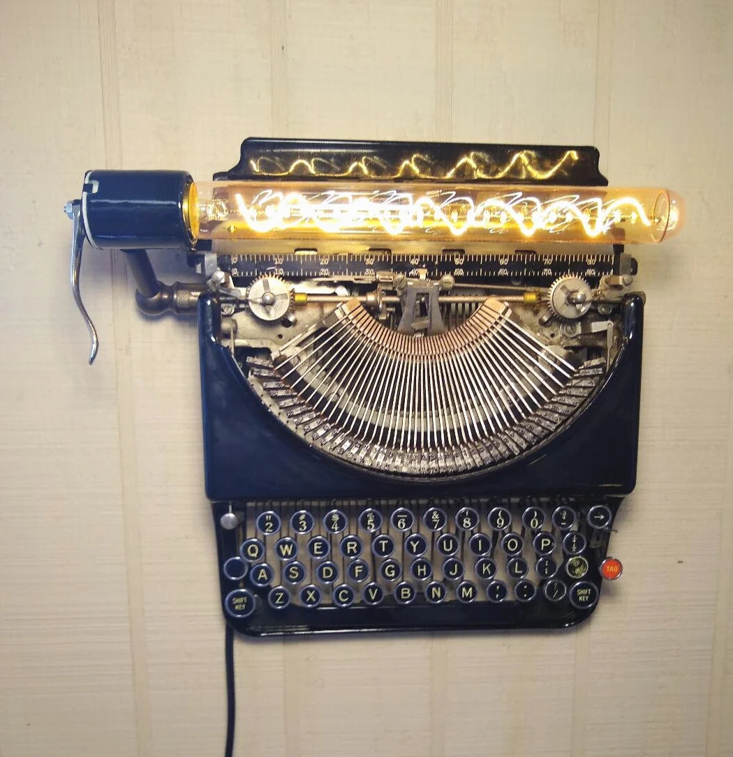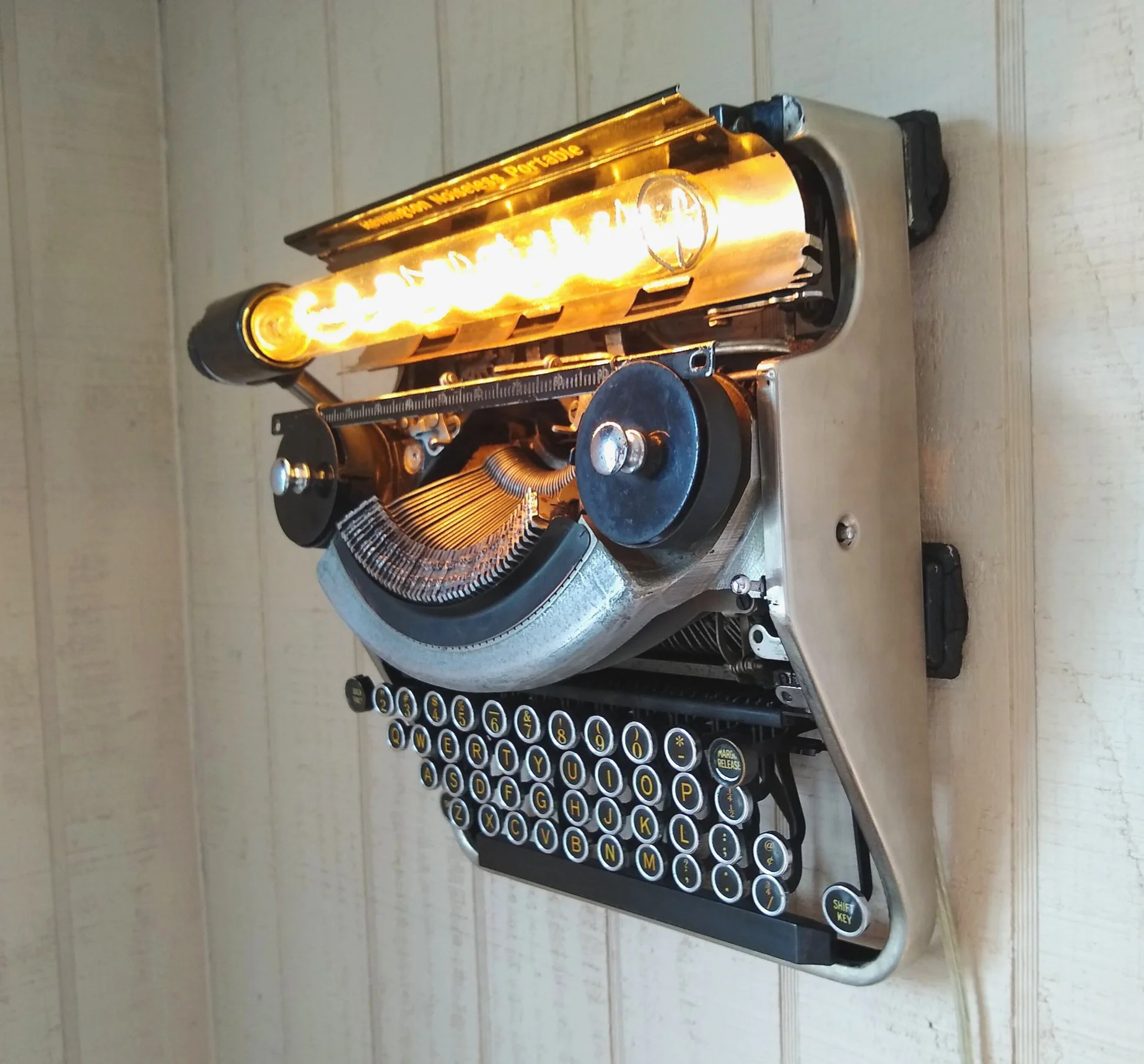 Old, no longer working, manual typewriters make a great platform for accent lights, desk lamps, and wall sconces. I marvel at the craftsmanship of these old machines.