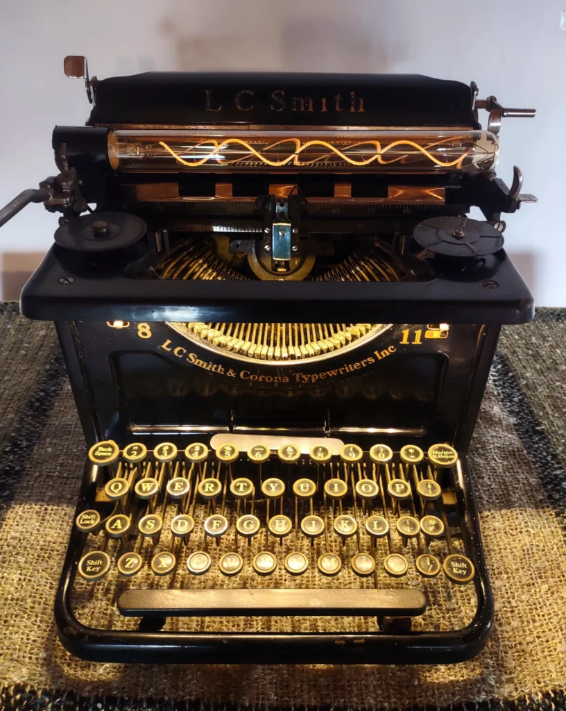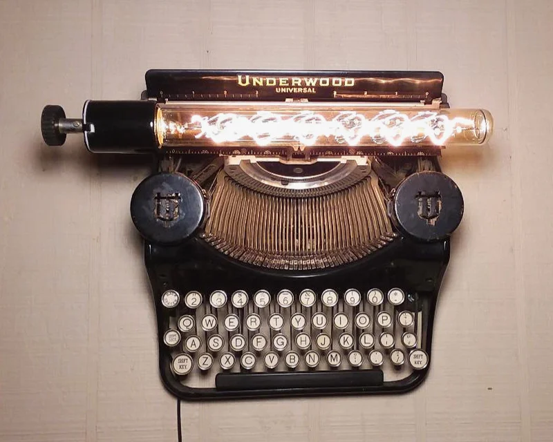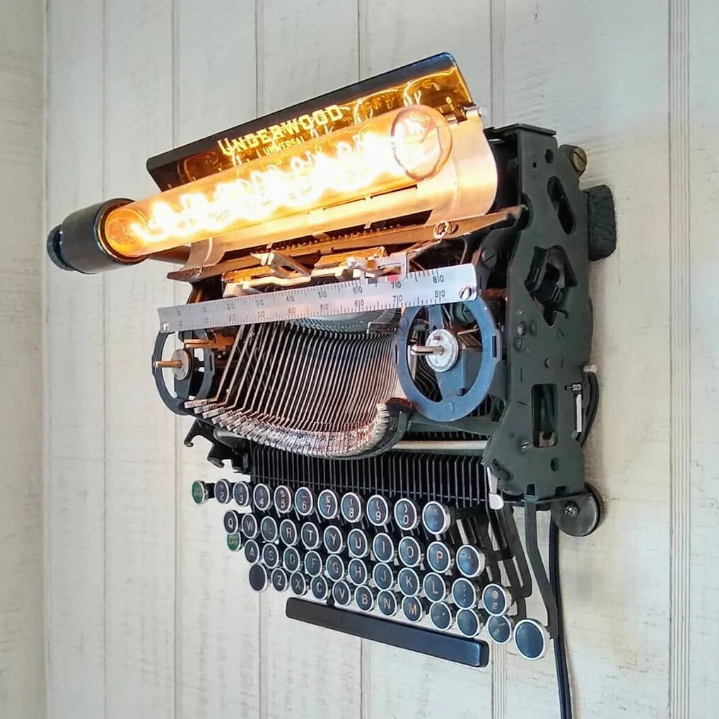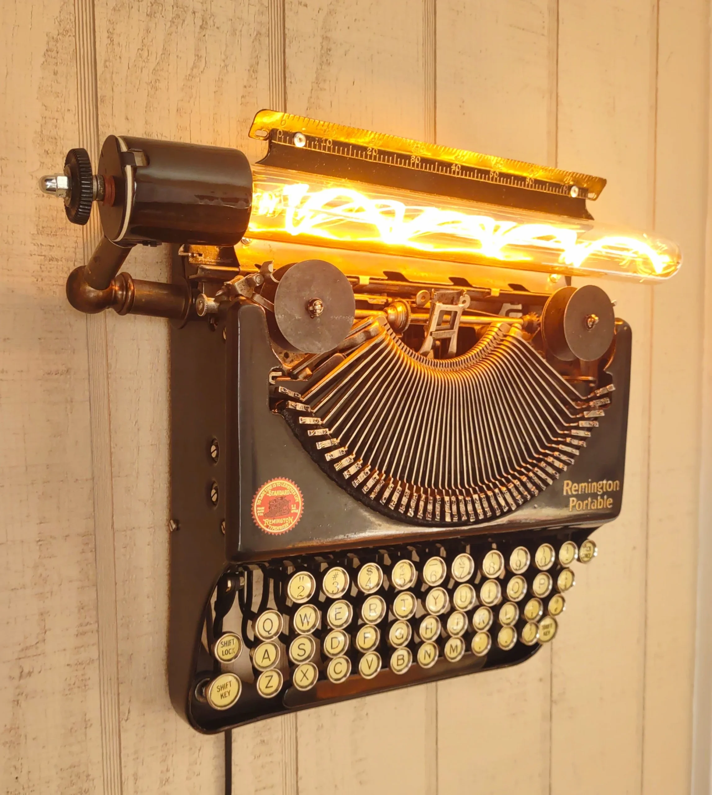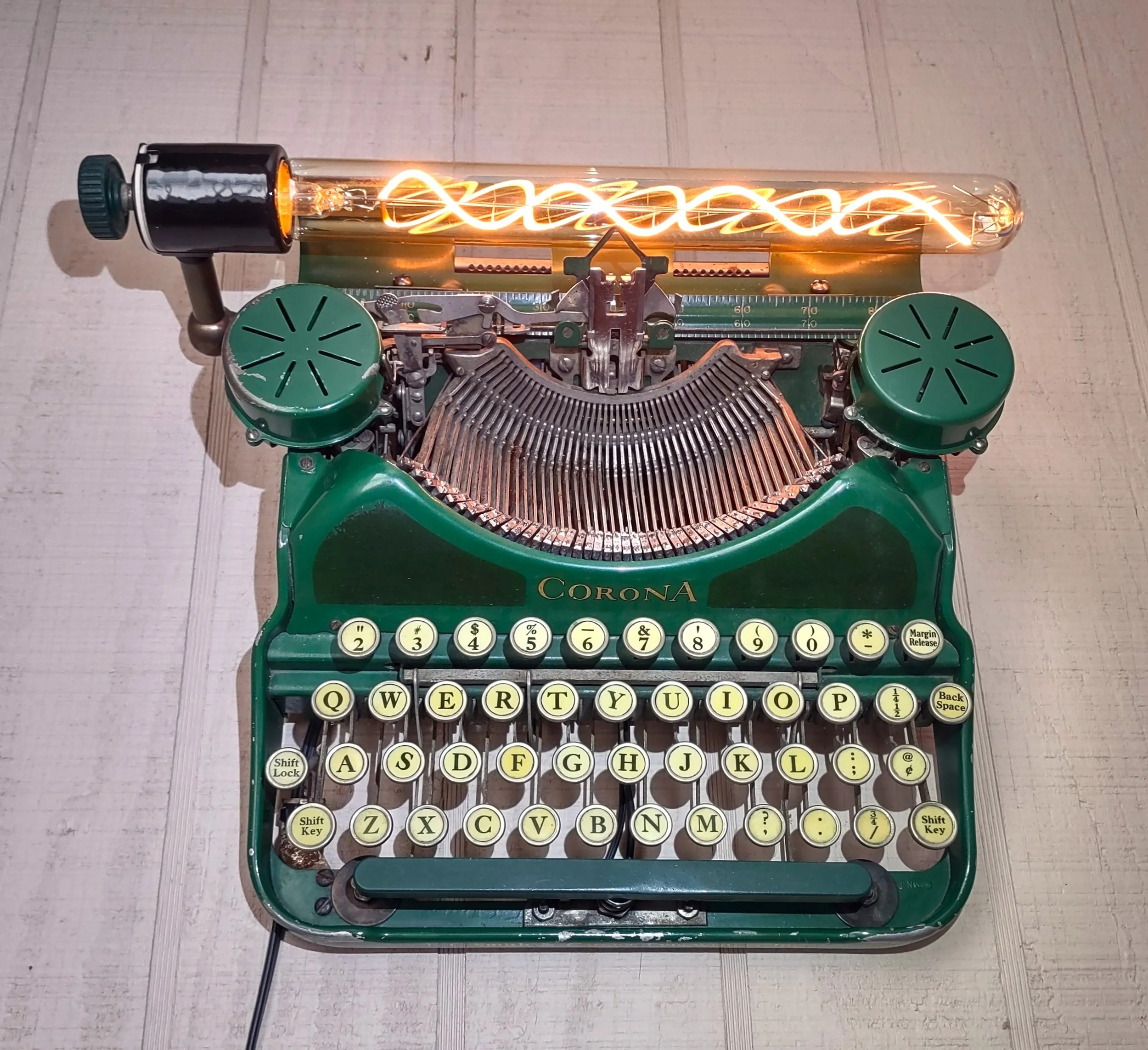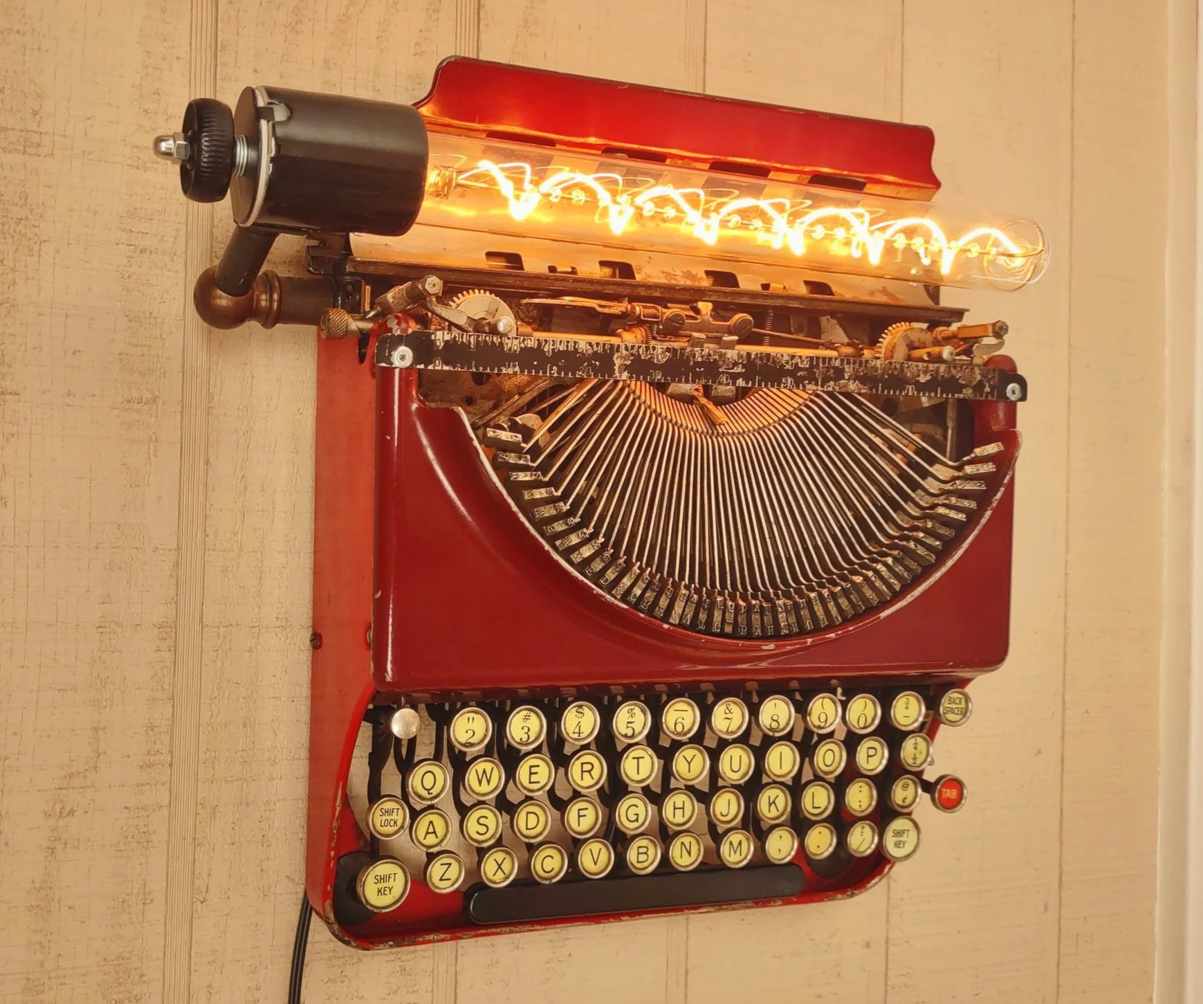 Old, no longer working, manual typewriters make a great platform for accent lights, desk lamps, and wall sconces. I marvel at the craftsmanship of these old machines.