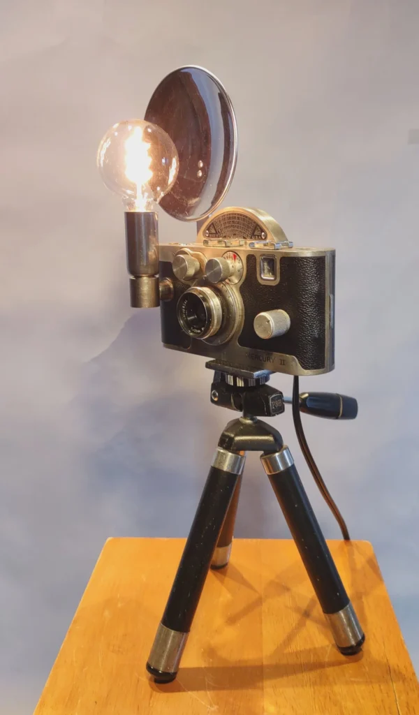 I have probably built more camera lamps than anything else. Still, no two lamps turn out alike.  There is just something exquisite in the design and workmanship in an antique camera.  They have that element of the flash (light), and their size also lends itself to a desk or table top item that will start a conversation without being obtrusive.